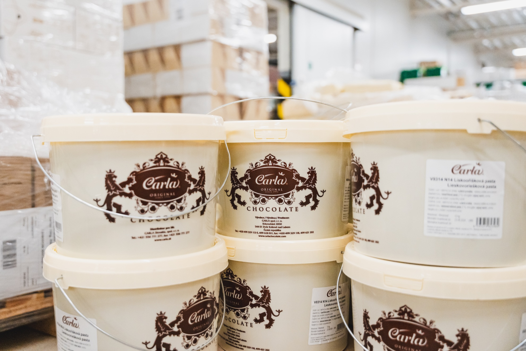 Niederländisches Kakaopulver, Glukosesirup in 5-kg-Eimern und eine Grundfondantmasse ergänzen das Sortiment an Schokoladenkörnern. Sie ermöglichen es, mehrere technologische Schritte aus einer Hand zu lösen und eine einheitliche Qualität über die gesamte Produktion hinweg zu gewährleisten.